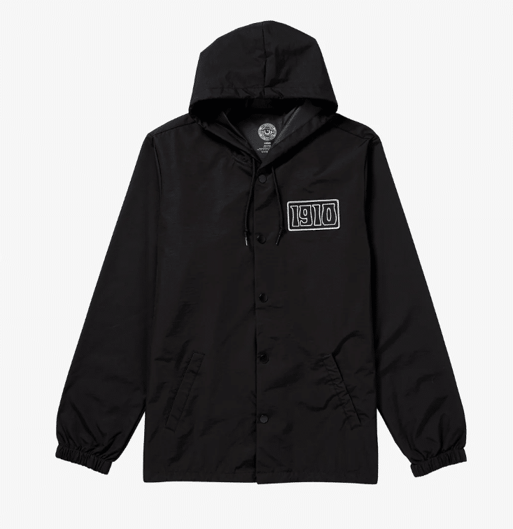 Elevate your outerwear game with the 1910 Roberta Patch Hooded Coach Jacket. This stylish and functional jacket combines classic coach jacket appeal with modern protection. Crafted from durable nylon, it features a convenient hooded design for added coverage and a full front snap closure for easy wear. The standout “Roberta” patch adds a unique touch, reflecting the signature artistic collaboration of Jamie Lynn and Schoph. With its Level 3 waterproof coating, this jacket is designed to keep you dry and comfortable, whether you’re navigating city streets or heading out for an adventure. Perfect for layering, it offers a versatile silhouette that blends effortlessly into any casual or street-inspired look